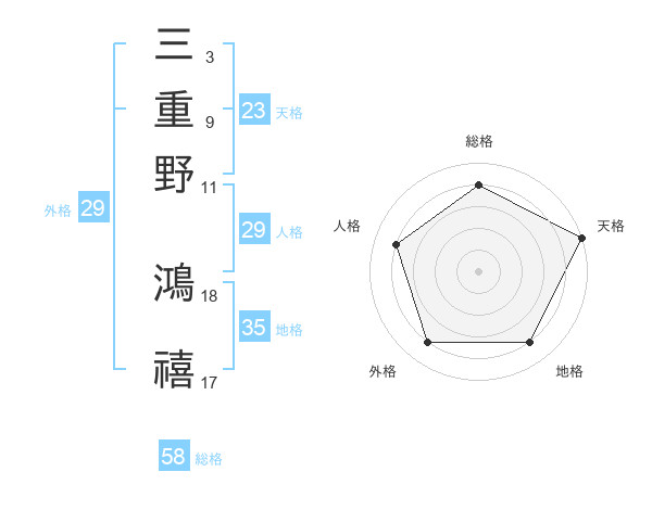 三重野 鴻禧さんを姓名の画数から五運を鑑定