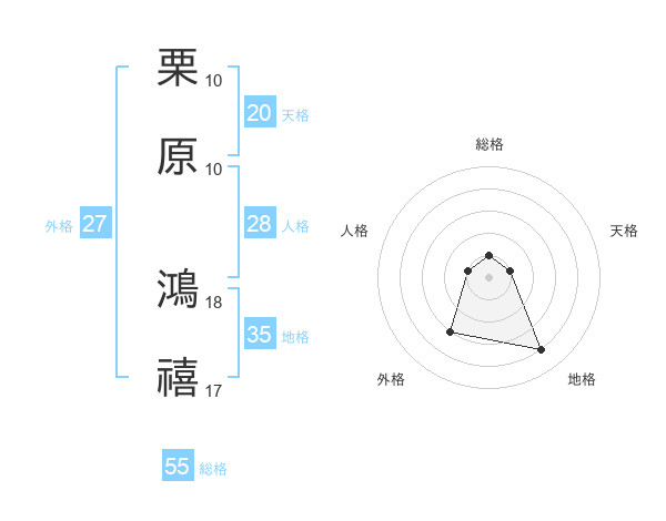 栗原 鴻禧さんを姓名の画数から五運を鑑定