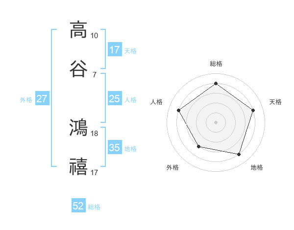 高谷 鴻禧さんを姓名の画数から五運を鑑定