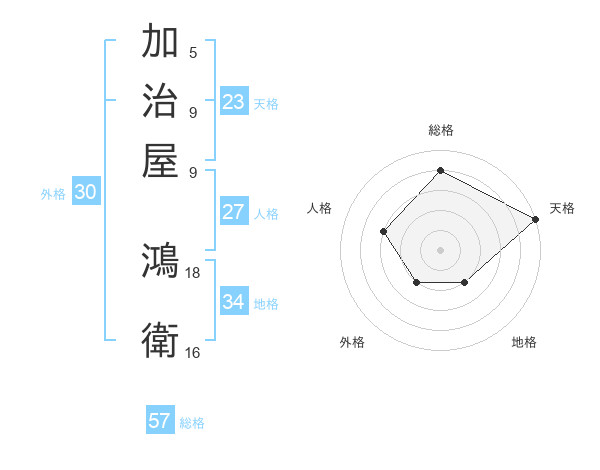 加治屋 鴻衛さんの総格は57画の4点