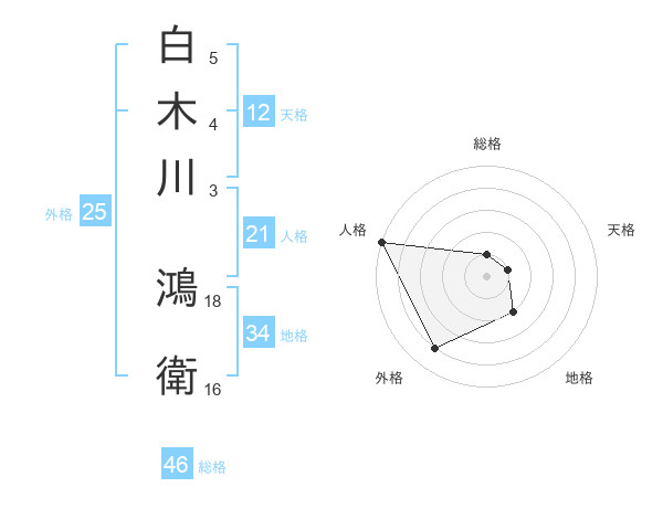 白木川 鴻衛さんを姓名の画数から五運を鑑定