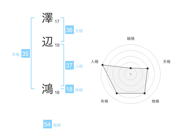 澤辺 鴻さんを姓名の画数から五運を鑑定