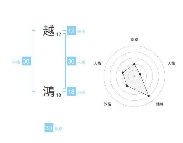 越 鴻さんの総格は30画の2点!