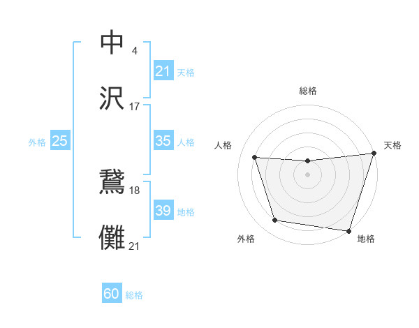 中沢 鵞儺さんの天格は21画の5点!