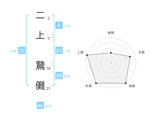 二上 鵞儺さんの総格は44画の2点!