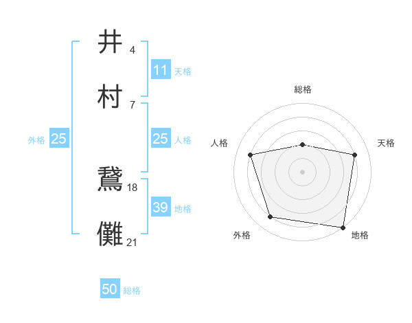 井村 鵞儺さんを姓名の画数から五運を鑑定