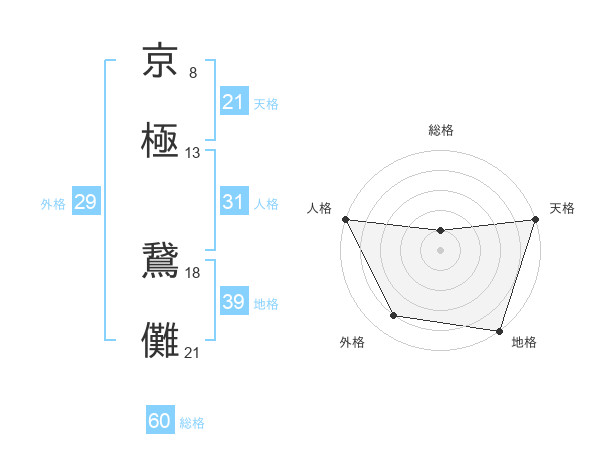 京極 鵞儺さんの総格は60画の1点!