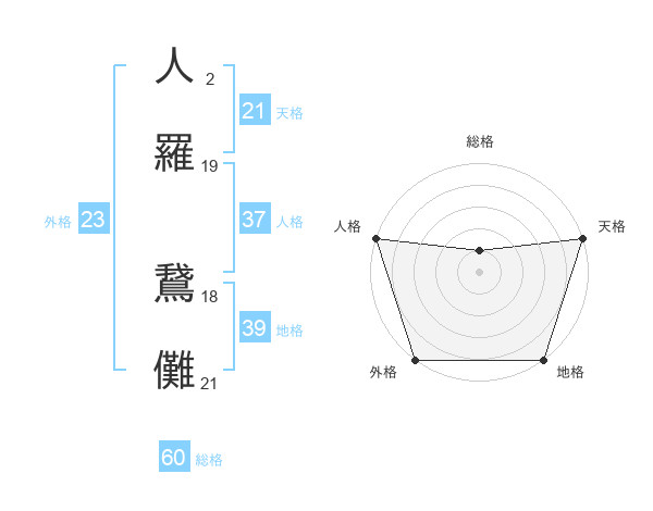 人羅 鵞儺さんを姓名の画数から五運を鑑定