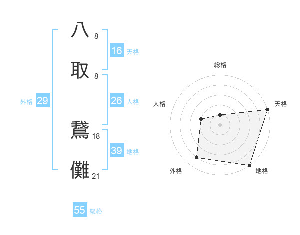 八取 鵞儺さんを姓名の画数から五運を鑑定