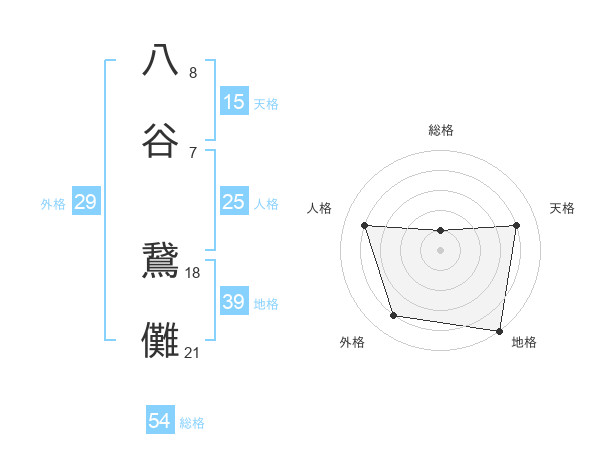八谷 鵞儺さんの総格は54画の1点!