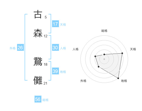 古森 鵞儺さんを姓名の画数から五運を鑑定