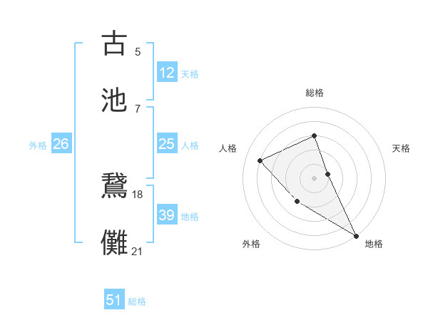 古池 鵞儺さんの総格は51画の3点!