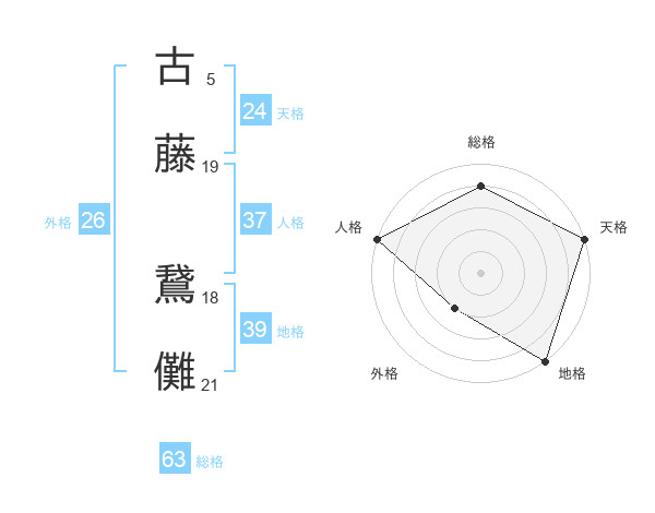 古藤 鵞儺さんの総格は63画の4点!
