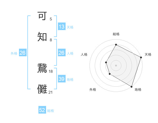 可知 鵞儺さんの総格は52画の4点!