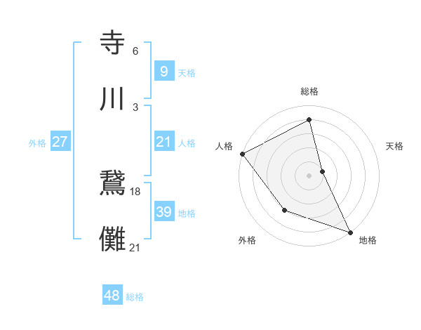 寺川 鵞儺さんの総格は48画の4点!