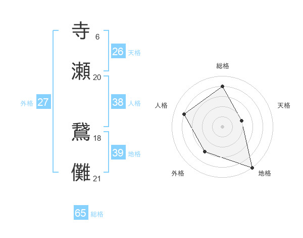 寺瀬 鵞儺さんの総格は65画の4点!