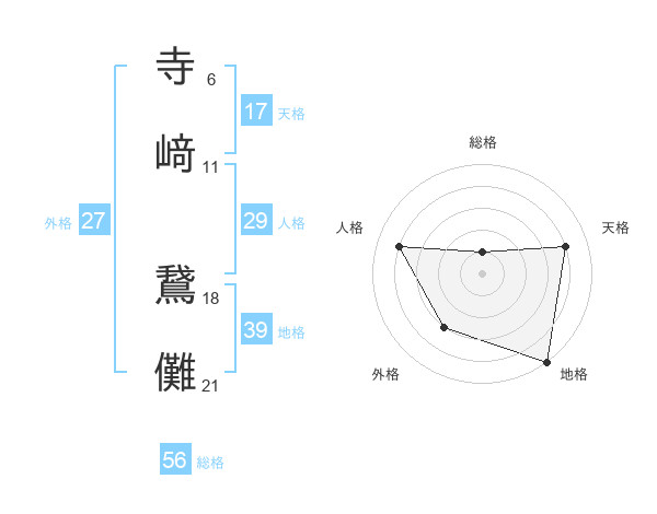 寺﨑 鵞儺さんの外格は27画の3点!