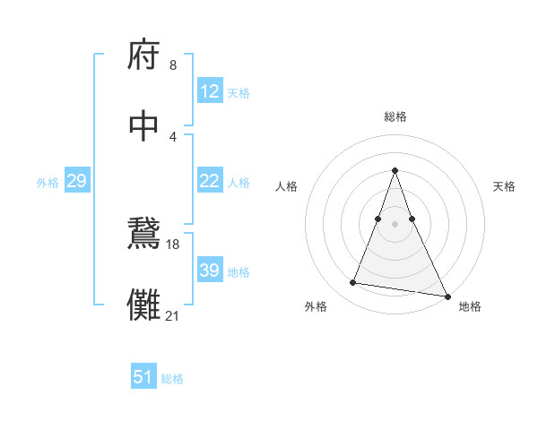 府中 鵞儺さんを姓名の画数から五運を鑑定