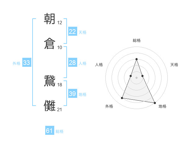 朝倉 鵞儺さんを姓名の画数から五運を鑑定