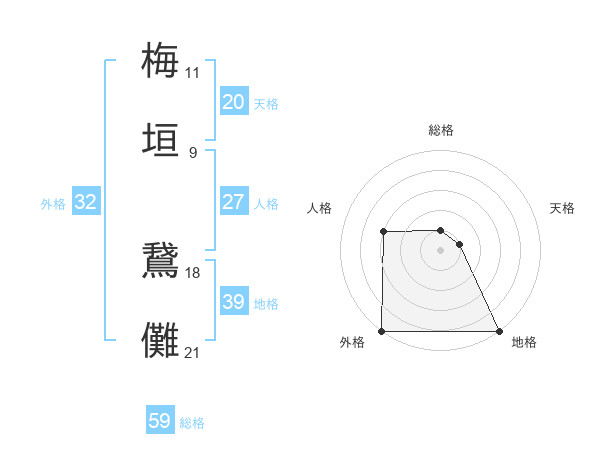 梅垣 鵞儺さんの地格は39画の5点!