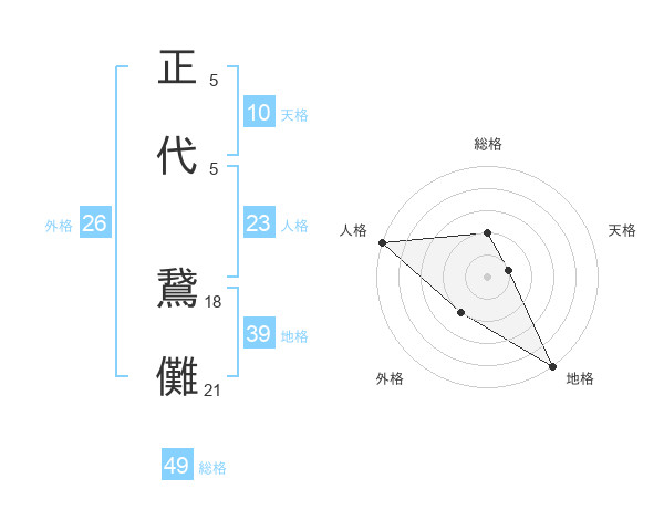 正代 鵞儺さんの外格は26画の2点!