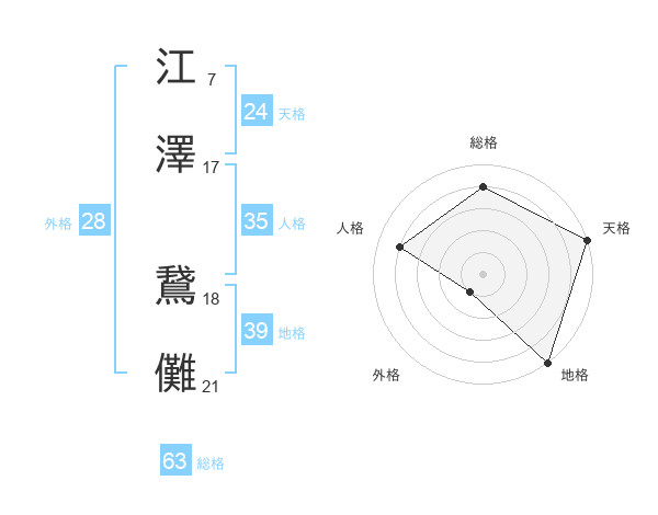 江澤 鵞儺さんを姓名の画数から五運を鑑定