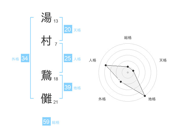 湯村 鵞儺さんの総格は59画の1点!