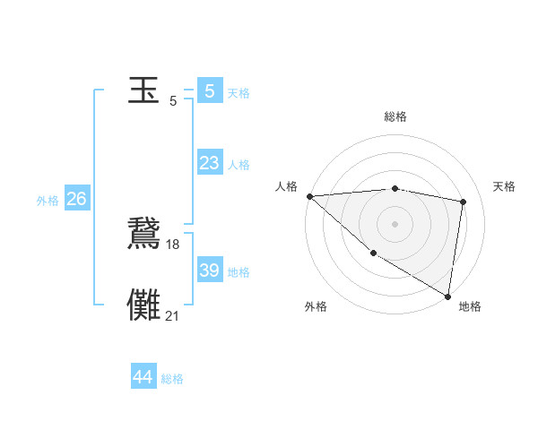 玉 鵞儺さんを姓名の画数から五運を鑑定