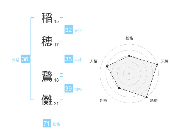 稲穂 鵞儺さんの総格は71画の3点!