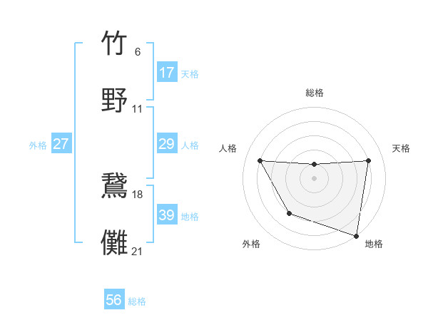 竹野 鵞儺さんを姓名の画数から五運を鑑定