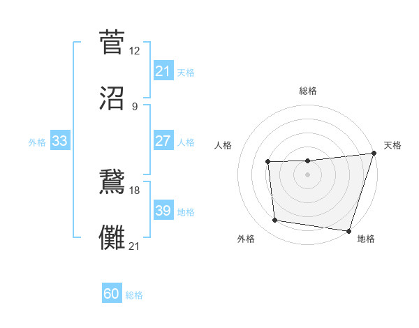 菅沼 鵞儺さんを姓名の画数から五運を鑑定