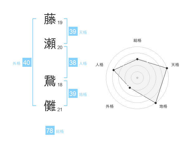 藤瀬 鵞儺さんの総格は78画の3点!