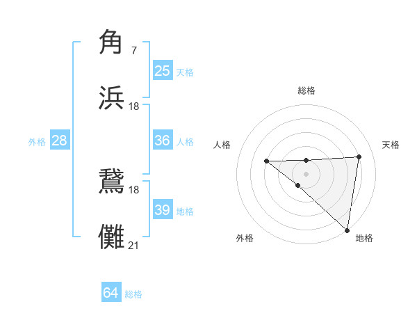角浜 鵞儺さんを姓名の画数から五運を鑑定
