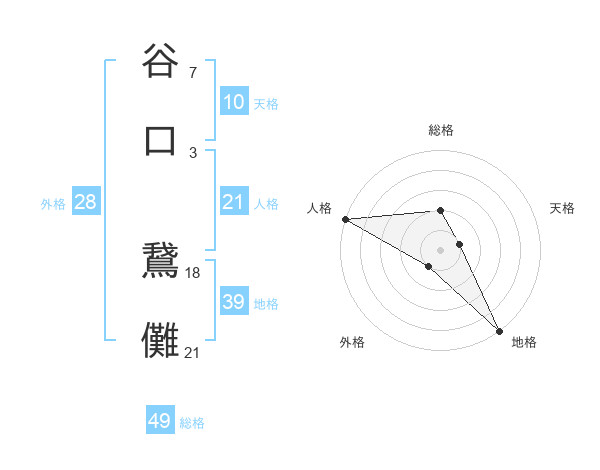 谷口 鵞儺さんを姓名の画数から五運を鑑定