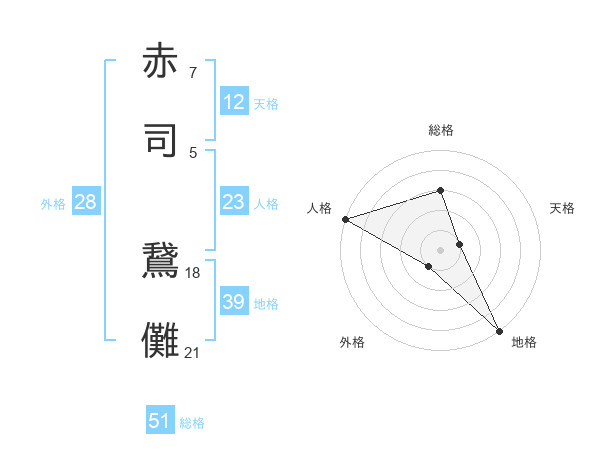 赤司 鵞儺さんを姓名の画数から五運を鑑定