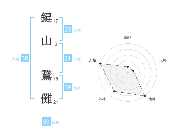 鍵山 鵞儺さんを姓名の画数から五運を鑑定
