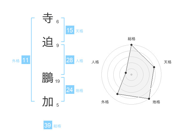 寺迫 鵬加さんを姓名の画数から五運を鑑定