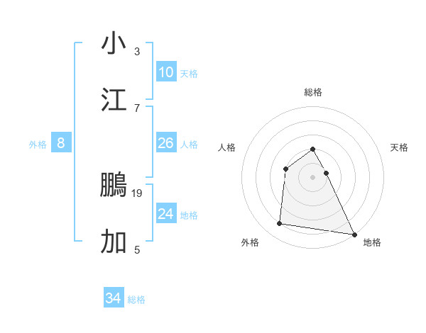 小江 鵬加さんの総格は34画の2点!