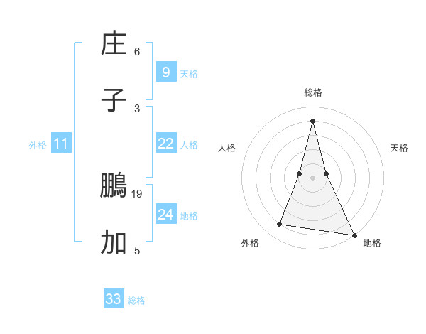 庄子 鵬加さんを姓名の画数から五運を鑑定