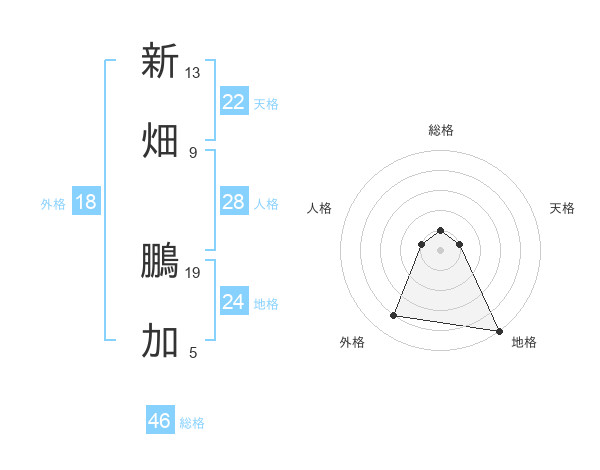 新畑 鵬加さんの天格は22画の1点!