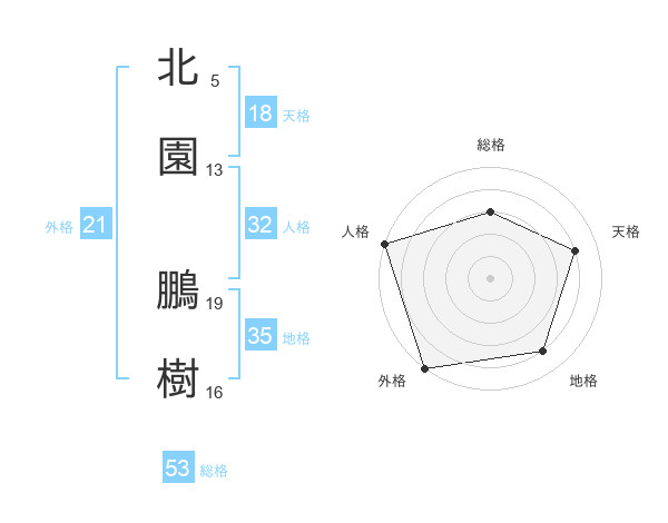 北園 鵬樹さんを姓名の画数から五運を鑑定