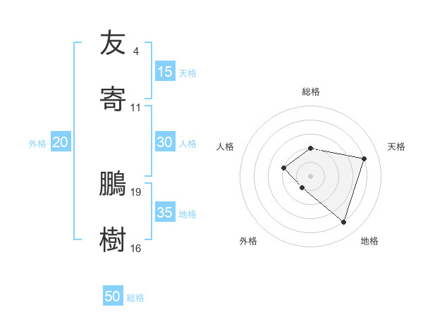 友寄 鵬樹さんを姓名の画数から五運を鑑定