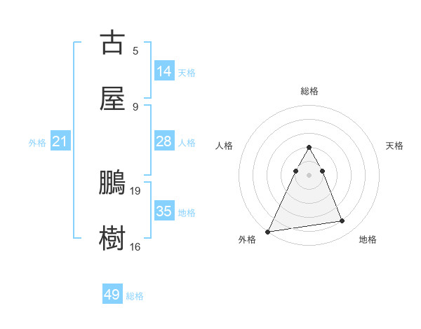 古屋 鵬樹さんを姓名の画数から五運を鑑定