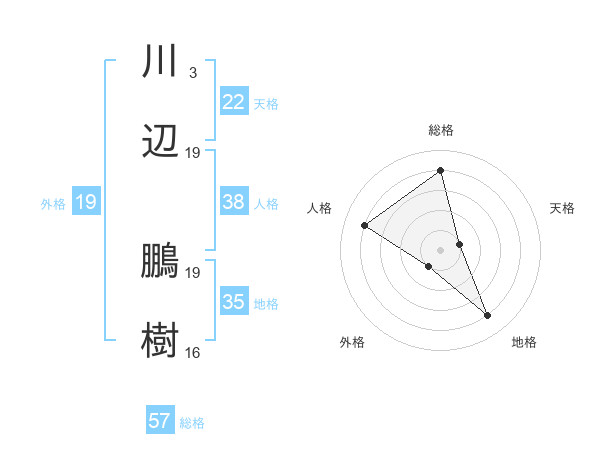 川辺 鵬樹さんを姓名の画数から五運を鑑定