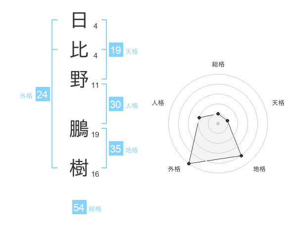 日比野 鵬樹さんを姓名の画数から五運を鑑定