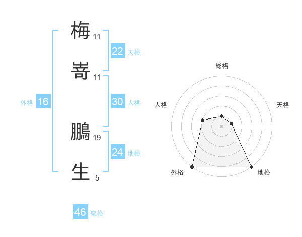 梅嵜 鵬生さんを姓名の画数から五運を鑑定