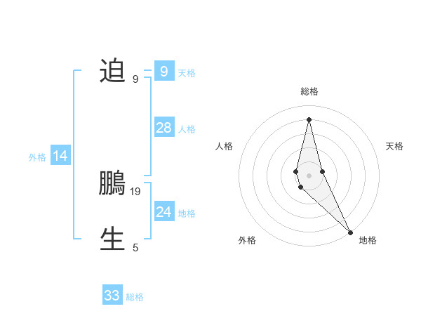 迫 鵬生さんを姓名の画数から五運を鑑定