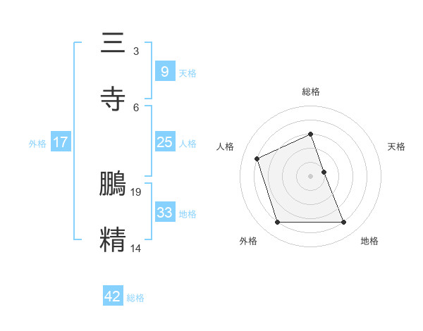 三寺 鵬精さんを姓名の画数から五運を鑑定
