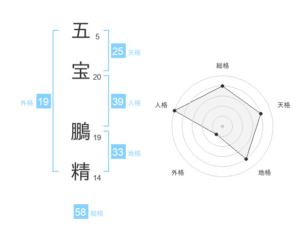 五宝 鵬精さんを姓名の画数から五運を鑑定