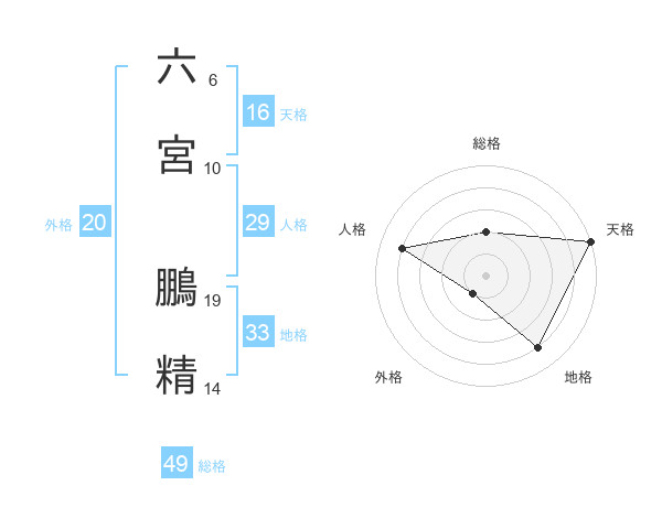 六宮 鵬精さんの総格は49画の2点!